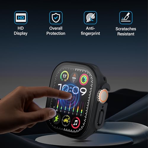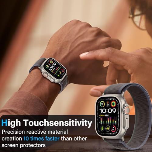 - [حساس لشاشة اللمس] يتميز جراب الحماية لساعة ابل الترا 2/1 بتصميم رفيع للغاية مع وضوح عالي الدقة بنسبة 99.99%، مما لا يؤثر على حساسية اللمس الأصلية لساعة ابل الترا 2/1، مما يمنحك تجربة بصرية ولمسية أصلية.