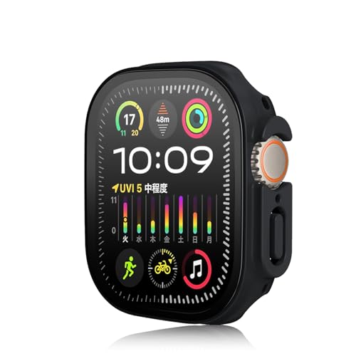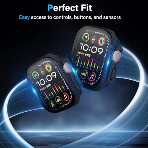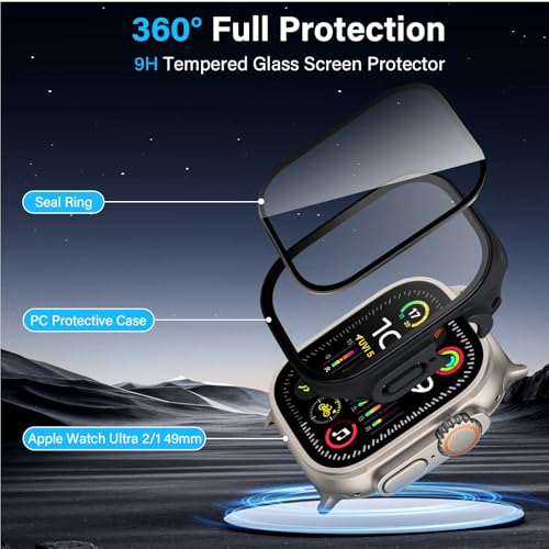 Haofun - جراب لساعة ابل الترا 2-1 من هاوفن البولي كربونات مع شاشة حماية زجاجية [مقاوم للخدش والماء ورفيع للغاية] 2-1 - أسود