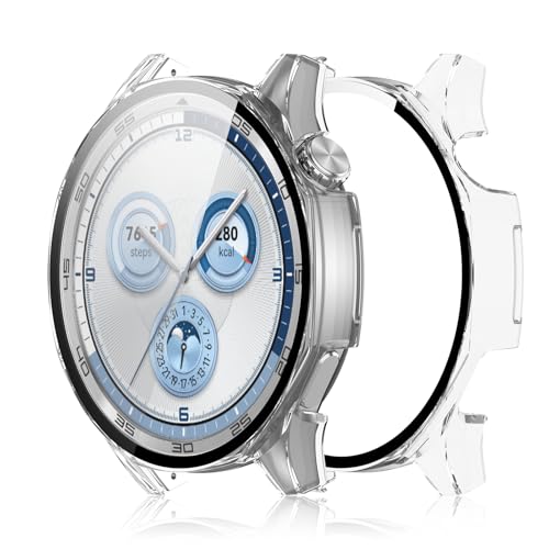 Haofun - حافظة حماية من هاوفن لساعة هواوي GT5 مقاس 46 ملم قطعتين البولي كربونات مع واقي شاشة زجاجي [مقاوم للخدش ورفيع للغاية] غطاء GT5 - شفاف +