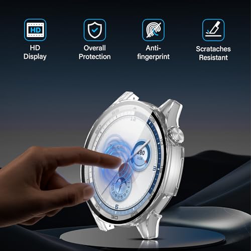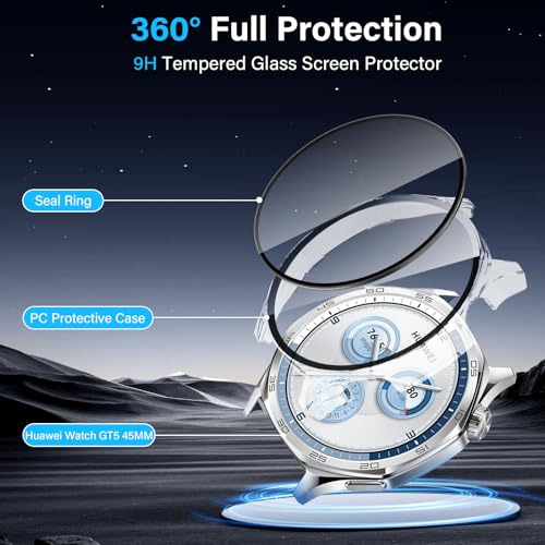 - [حماية كاملة] جراب ساعة هواوي جي تي 5 46 ملم مصنوع من البولي كربونات عالي الجودة المضاد للخدش والزجاج المقسى، متين للغاية، مقاوم للخدش، مقاوم للماء، لا يتلف بسهولة، عملي ومريح..