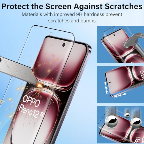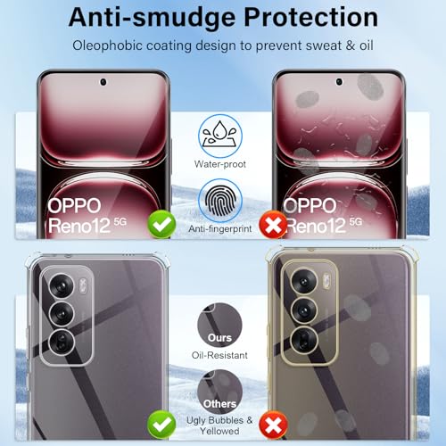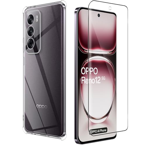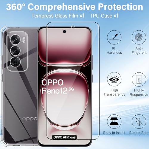 Haofun - شاشة حماية من الزجاج المقوى لموبايل أوبو رينو 12 شبكة الجيل الخامس 5G بحماية كاملة بدرجة صلابة 9H مع جراب حماية من البولي يوريثين الحراري ممتص للصدمات ومضاد للاصفرار من هاوفن، [قطعة واحدة]