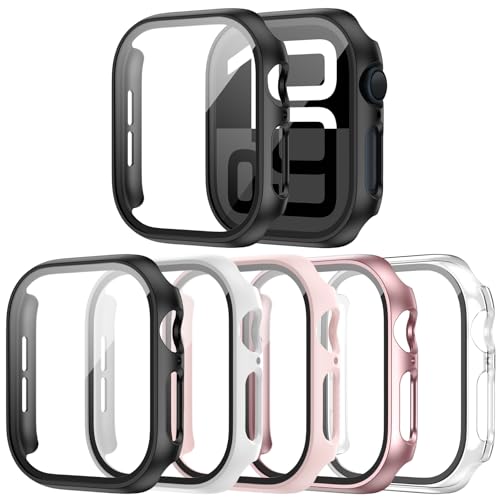 Haojavo - جراب حماية للشاشة لساعة آبل سلسلة 10 مقاس 46 ملم (2024) من هاوجافو، غطاء صلب من بولي كربونات بطبقة من زجاج مقوى رفيع للغاية ومقاوم للخدش وممتص للصدمات لاكسسوارات اي ووتش S10، 5 قطع