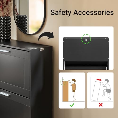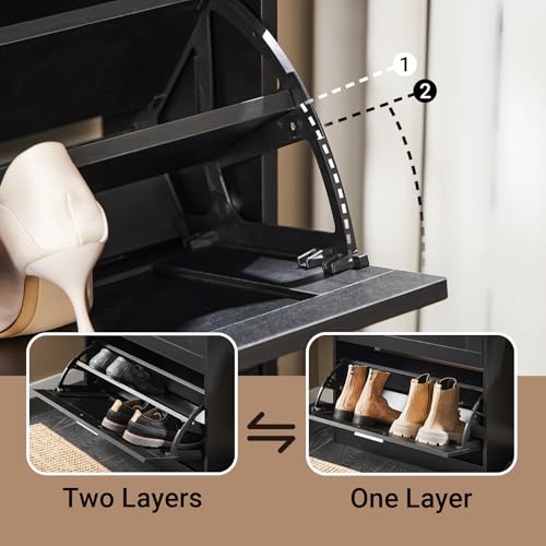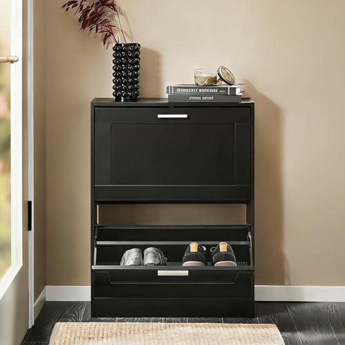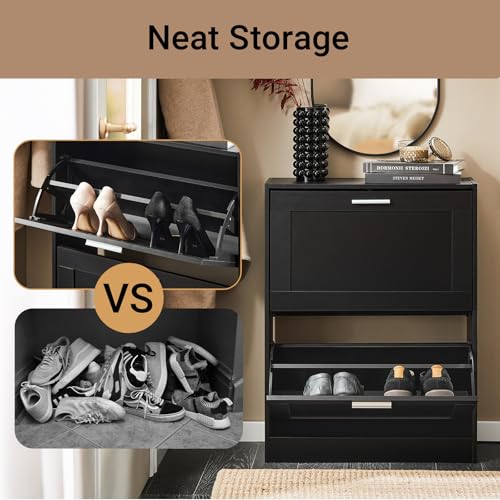 Haotian - خزانة تخزين أحذية صغيرة رفيعة للمدخل، منظم أحذية ضيق بدرجين قلاب للباب الأمامي والمدخل من هاوشيان، لون أسود، موديل FSR137-SCH