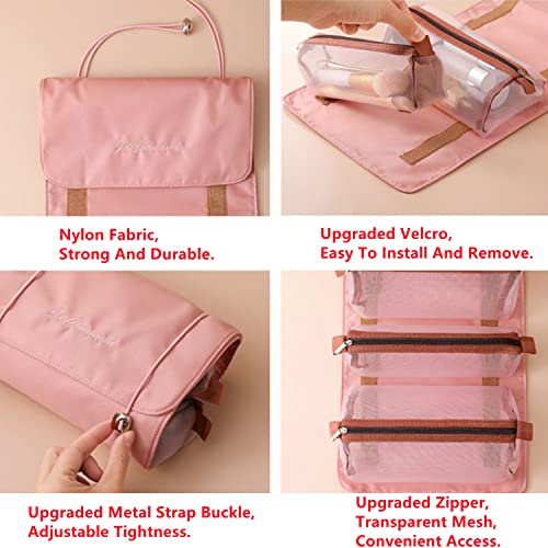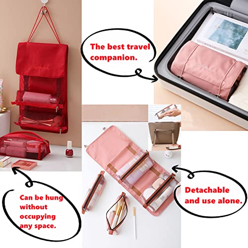 HAPIBY - حقيبة ادوات الزينة المعلقة للسفر للرجال والنساء من هابيبي شنطة مستحضرات تجميل معلقة سريعة اللف وقابلة للازالة مع مساحة تخزين شبكية قابلة للطي احمر نايلون