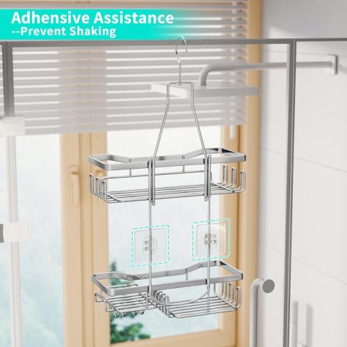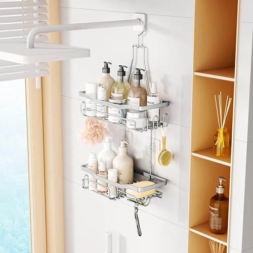 HapiRm - رف دش معلق مع حامل حلاقة وحامل صابون للتعليق بخطافات متعددة - سلة عالية الجودة من الفولاذ المقاوم للصدأ لا يتطلب ثقب هابيريم فضي