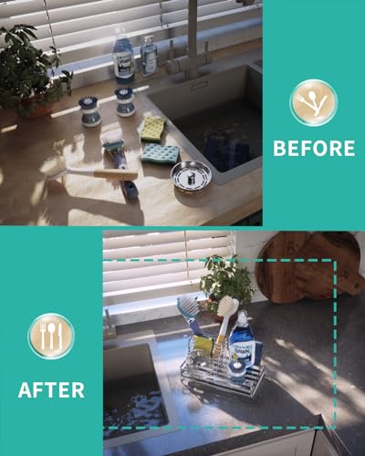 - 🌟【قم بتحويل مساحة الحوض】ارتقِ بمطبخك مع حامل الإسفنج 5 في 1! يتميز بمساحات تخزين مخصصة للفرش والإسفنج وسدادات الحوض، ويضمن منظم حوض المطبخ هذا منضدة خالية من الفوضى. مثالي لأولئك الذين يحبون المطبخ المنظم، لا يتآكل منظم الحوض الخاص بنا فحسب، بل يضيف أيضًا لمسة من الأناقة إلى مساحتك.