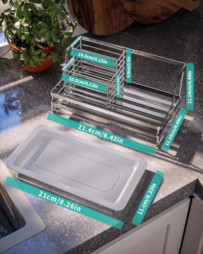 - ✨【تصميم متين وأنيق】مصنوع من الستانلس ستيل 304 الممتاز، منظم المطبخ الخاص بنا مصمم ليدوم طويلاً، مقاوم للماء والصدأ بسهولة. تتيح لك أبعادها الواسعة 8.4 × 4.5 × 4.5 انش تخزين المزيد من العناصر مع الحفاظ على مظهر أنيق. لا يبدو السطح المصقول مذهلاً فحسب، بل يتميز أيضًا بملمس ناعم، مما يضمن السلامة دون التنازل عن الأناقة.