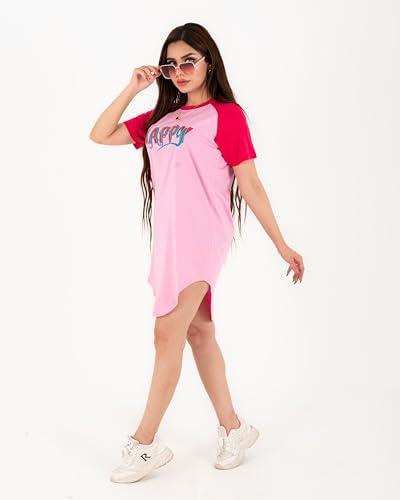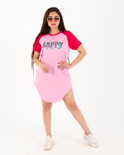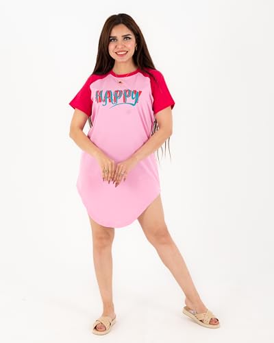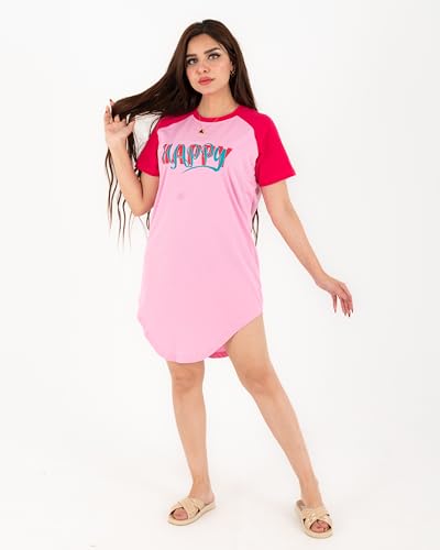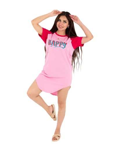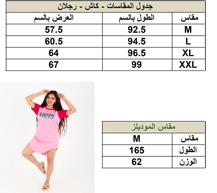 Generic - كاش مايوه السعاده قطن 100% للنساء والبنات بلونين روز× فوشيا وتصميم HAPPY عصري – مثالي للاسترخاء في البيت والنوم وكمان للشاطئ لأجواء الصيف