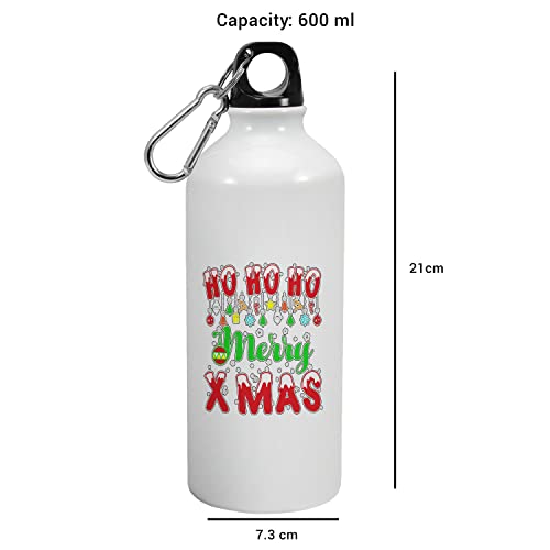 Happu - زجاجة شرب من الالومنيوم هابو® لهدايا الكريسماس وسانتا السرية بتصميم عبارة «Ho Merry Xmas» مناسبة للاطفال والاباء والاخوات والاصدقاء والعائلة والابناء - 8811-AB-600