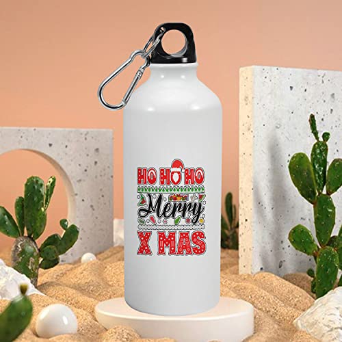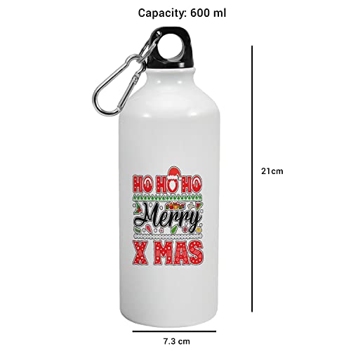 Happu - زجاجة شرب من الالومنيوم هابو® لهدايا الكريسماس وسانتا السرية بتصميم عبارة «Ho Merry Xmas» مناسبة للاطفال والاباء والاخوات والاصدقاء والعائلة والابناء - 8806-AB-600
