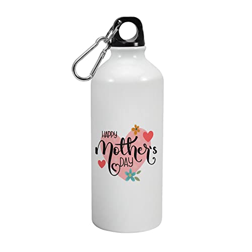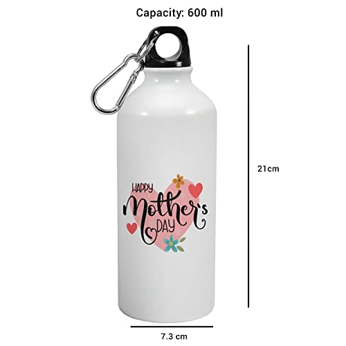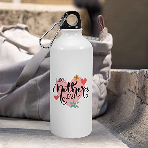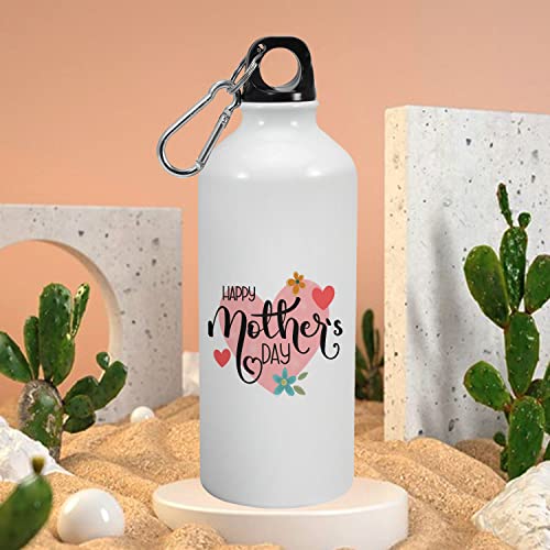 Happu - زجاجة شرب من الالومنيوم مطبوع عليها اقتباسات عيد الام «Happy Mothers Day» ومزينة بالزهور والقلوب من هابو، هدية عيد الام من الابنة والابن، هدية لربات البيوت والنساء العاملات والامهات، 4219-AB-600