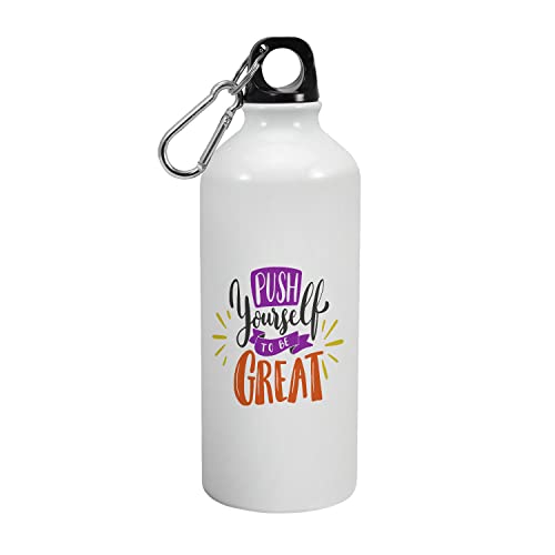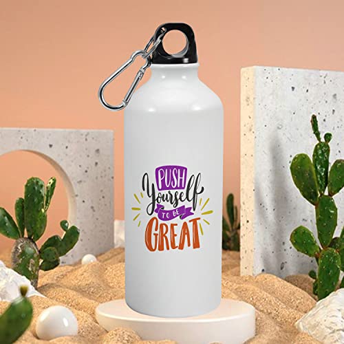Happu - زجاجة مياه شرب من الالومنيوم مطبوعة باقتباس تحفيزي - ادفع نفسك لتكون عظيما هدية للنساء للمدربين-المدير-الموجهين-المحترفين رياضية لطيفة وانيقة 2833-AB-600 هابو