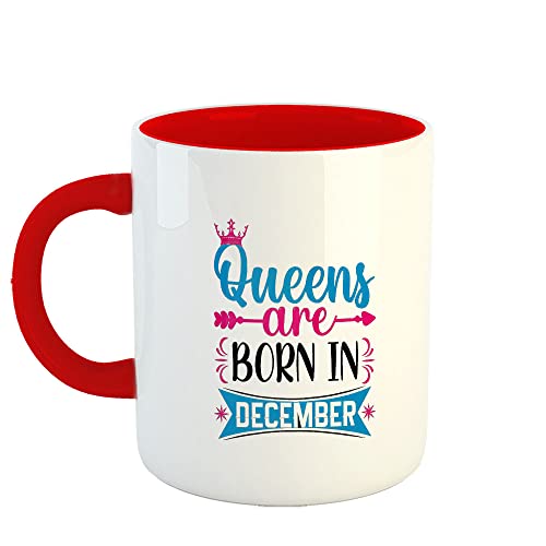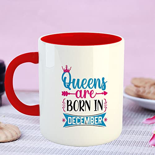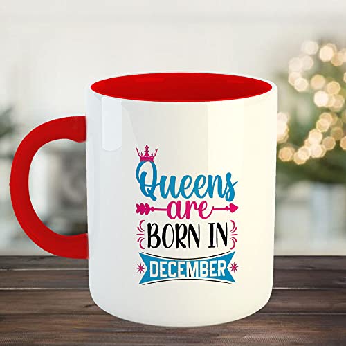 Happu - مج قهوة سيراميك مطبوع بعبارة December Birthday Wishes Queens are Born in من هابو® هدية عيد ميلاد للبنات الابنة الأخت الأم والزوجة 325 مل 11 اونصة موديل 7735-RD