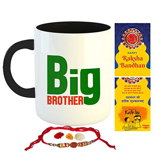 Happu - مج قهوة راكشباندان مع راخي وبطاقة تهنئة ورولي شوال بطبعة الأخ الأكبر مناسب للأخ والأخت Latest6299-BK من هابو