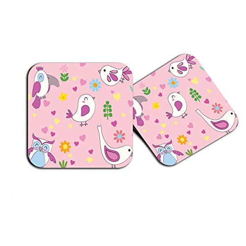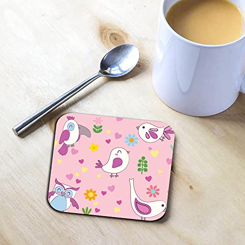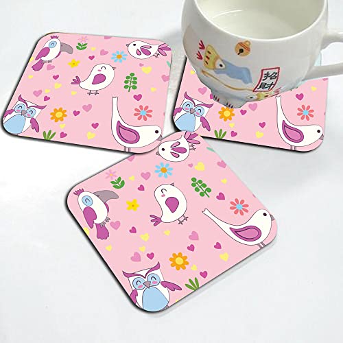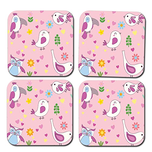 Happu - مجموعة من 4 قواعد اكواب خشبية مطبوعة من خشب ام دي اف بتصميم طيور، قواعد اكواب للمنزل والمكتب والطاولة الجانبية وطاولة الطعام، قواعد اكواب مربعة للشاي/القهوة/المشروبات، 3.5 × 3.5 انش، منتج ديكور منزلي،
