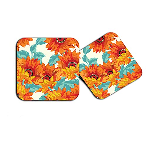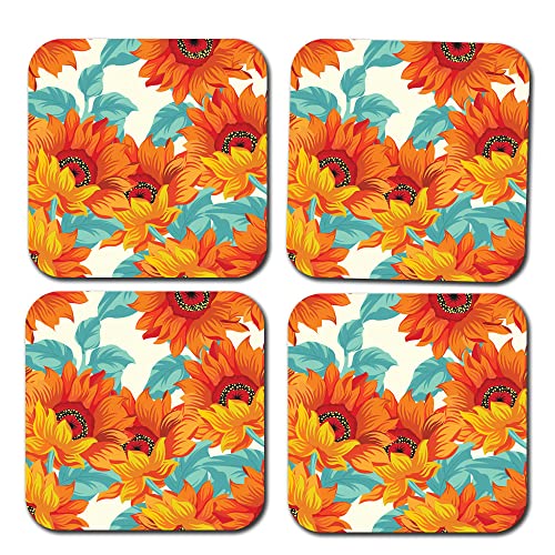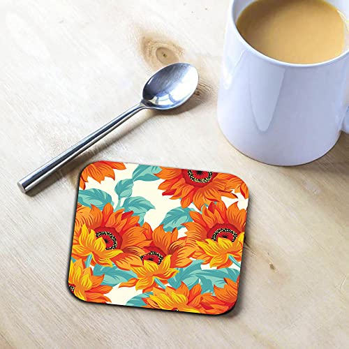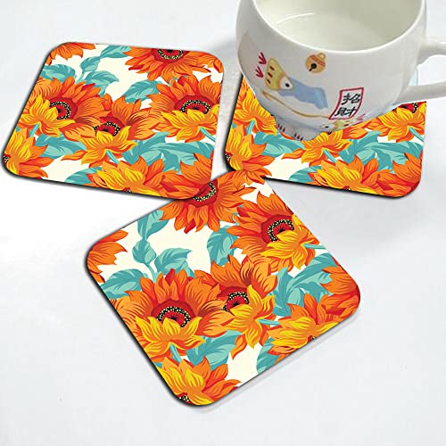 Happu - مجموعة من 4 قواعد اكواب خشبية مطبوعة من خشب ليفي متوسط الكثافة بتصميم زهرة الاقحوان للمنزل والمكتب والطاولة الجانبية وطاولة الطعام، قواعد اكواب مربعة للشاي/القهوة/المشروبات، 3.5 × 3.5 انش، منتج ديكور
