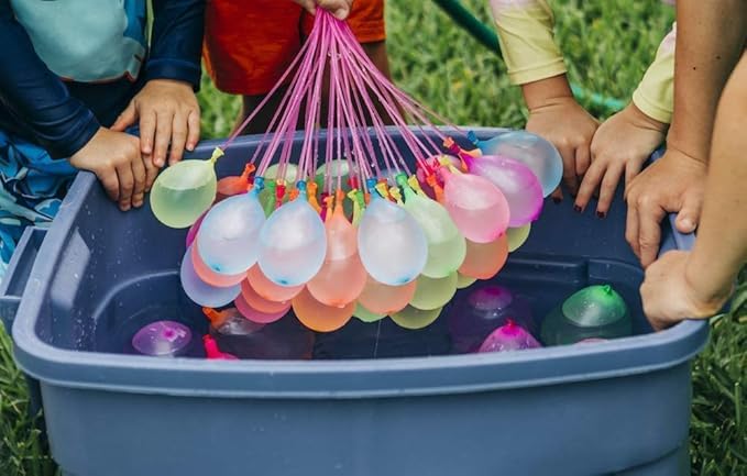 - عبوة بالونات مائية سريعة التعبئة: وفِّر وقت التعبئة واستمتع بالمرح في الهواء الطلق هذا الصيف. املأ واربط 100 بالون مائي في 60 ثانية فقط. تقنية الإغلاق الذاتي: لا مزيد من عمليات الربط المملة مع تصميم الإغلاق الذاتي المبتكر. قابل لإعادة التدوير: الأجزاء والتعبئة قابلة لإعادة التدوير بنسبة 100% وقابلة للتحلل البيولوجي بنسبة 100% تتضمن العبوة: 3 سيقان (111 بالون مائي) ملحق خرطوم للتعبئة السريعة، ألوان متنوعة: أزرق وأحمر وأخضر ووردي وبرتقالي وأصفر وأرجواني، حان الوقت للخروج ودع المرح يبدأ. هذه البالونات مصنوعة من مواد قابلة لإعادة التدوير.