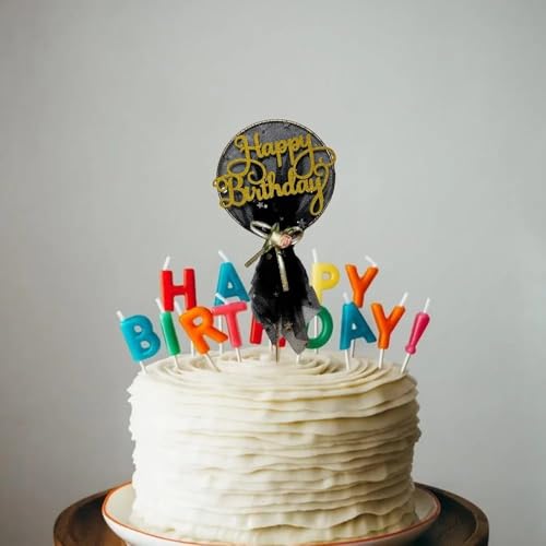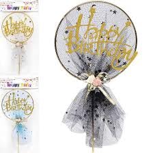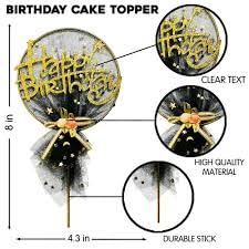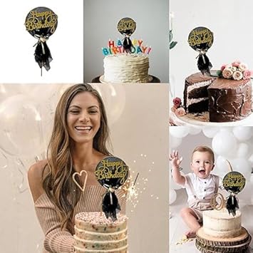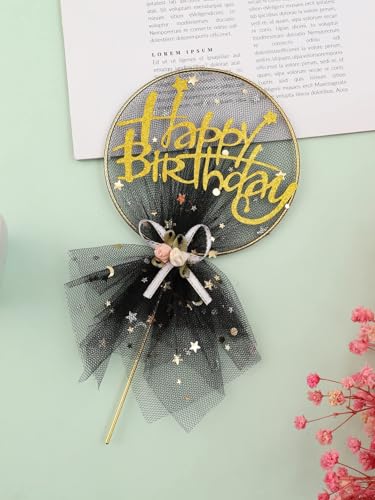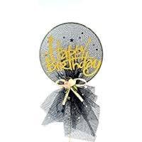 Generic - زينة كيك عيد ميلاد سعيد، بالون ذهبي دائري مع تول، مع قطعة تثبيت، للأطفال والبالغين (اسود)