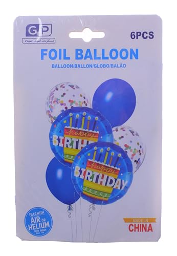 Generic - مجموعة بالونات عيد ميلاد سعيد مملوءة بالهواء او الهيليوم، 6 قطع - أبيض وأزرق فاتح