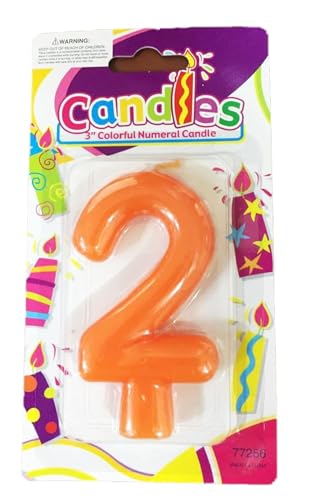 Generic - شمعة عيد الميلاد السعيد بتصميم على شكل رقم 2 ولون برتقالي
