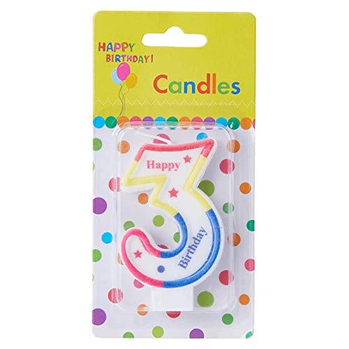 Other - شمعة ثلاثية ارقام مطبوعة بعبارة Happy Birthday بحافة قوس قزح في الوسط، قطعة واحدة، لون ابيض