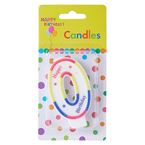 Other - شمعة مطبوعة بعبارة Happy Birthday بحافة قوس قزح في المنتصف بدون رقم، قطعة واحدة، لون ابيض