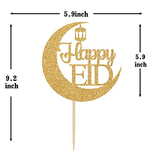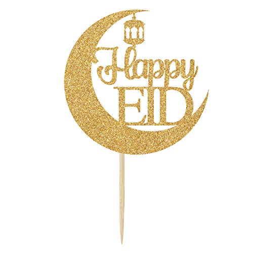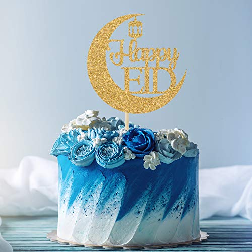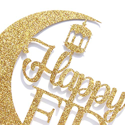 Ferastar - زينة كعكة العيد السعيد - ديكور عيد مبارك، ديكورات الحفلات الإسلامية، ديكورات حفلات العيد، ذهبي لامع
