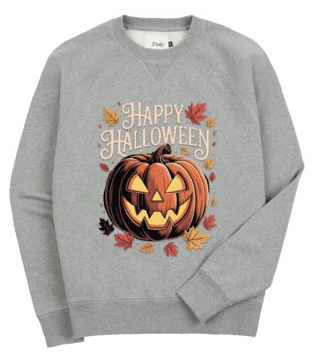 Generic - سويت شيرت بطباعة يقطين من هابي هالوين، مزيج من القطن الرمادي، تصميم أوراق الخريف، بلوفر جرافيك للعطلات الاحتفالية مقاس اكس لارج (XL)