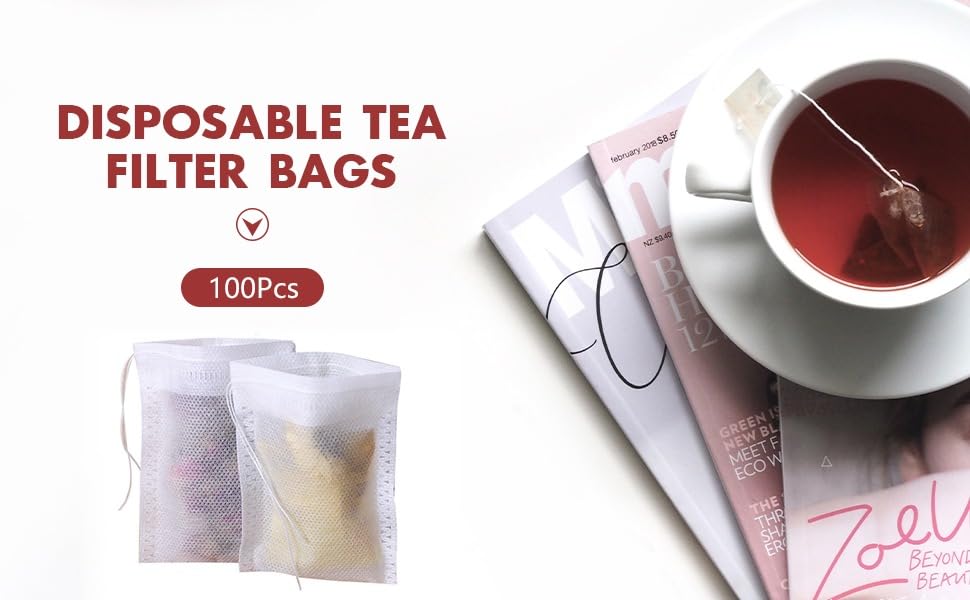 - [طبيعية وآمنة] أكياس فلتر الشاي الخاصة بنا مصنوعة من قماش غير منسوج آمن غذائيًا وغير سام وعديم الرائحة ويتحلل ذاتيًا بعد التخلص منها. قابلة للتحلل البيولوجي بالكامل وصديقة للبيئة، ما يحافظ على الكوكب الأخضر بطريقة صحية.