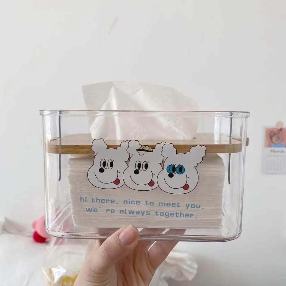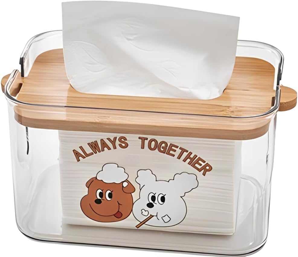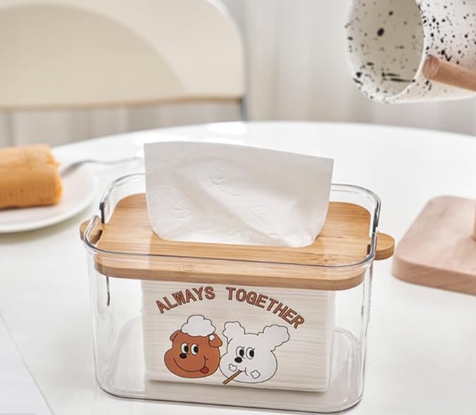 Happy Home - علبة مناديل اكريليك بغطاء خشبي قابل للإزالة بسعة عالية، علبة مناديل لديكور المنزل وغرفة المعيشة والمكتب وغرفة الدراسة بتصميمات لطيفة وجودة مذهلة (أشكال متعددة)، (اشتري واحدة واحصل على الأخرى مجانًا)