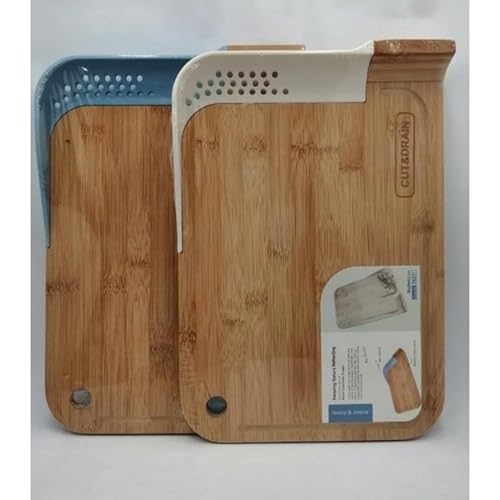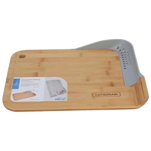 Happy Home - لوح تقطيع الطعام من خشب البامبو من هابي هوم، لوح تقطيع للمطبخ بمصفاة من السيليكون