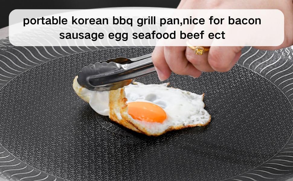 - مقابض مزدوجة مريحة: طاسة شواء كورية مجهز بمقابض مزدوجة، صينية الشواء الكورية سهلة الحمل والتخزين. يمكن تعليق طاسة الشواء الكورية لتوفير المساحة وهي سهلة التنظيف بالمسح أو الشطف.