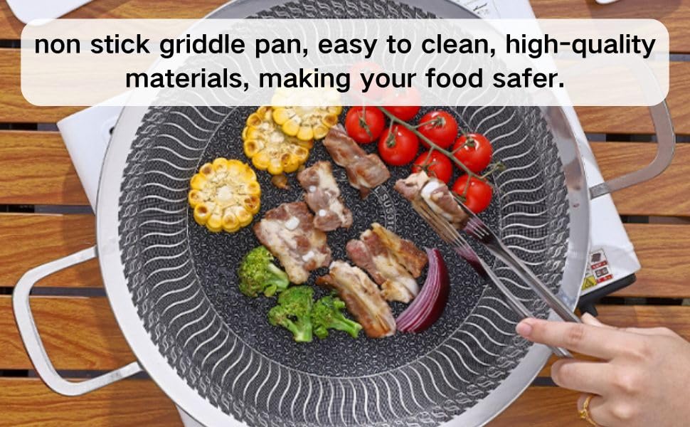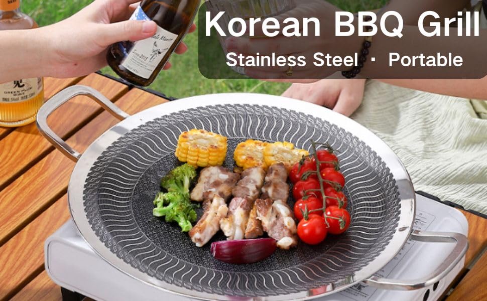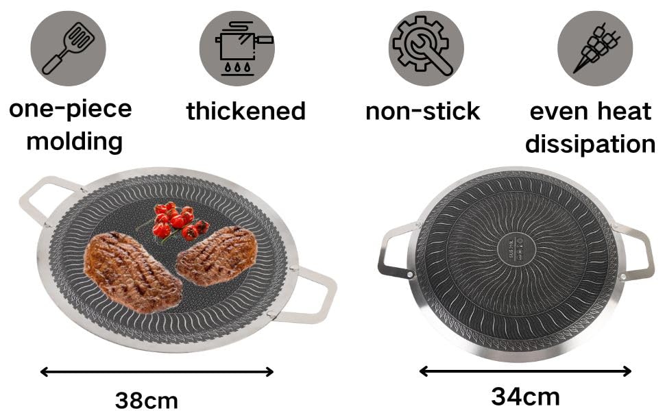 - مادة فولاذ مقاوم للصدأ غير لاصقة: صينية شواء كورية، مصنوعة من مادة فولاذ مقاوم للصدأ غير لاصقة وهيكل مركب من ثلاث طبقات، طاسة الشواء هذه مقاومة للحرارة وآمنة وتعزز الطبخ الصحي.