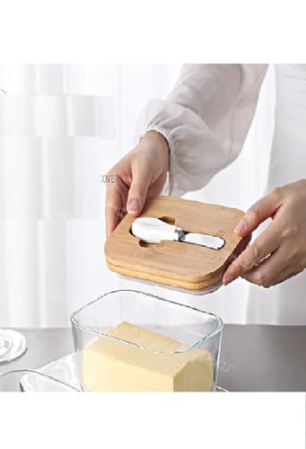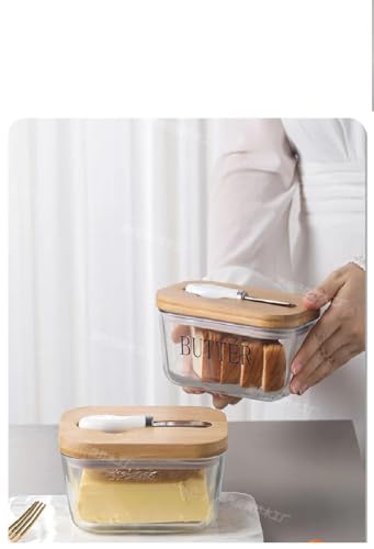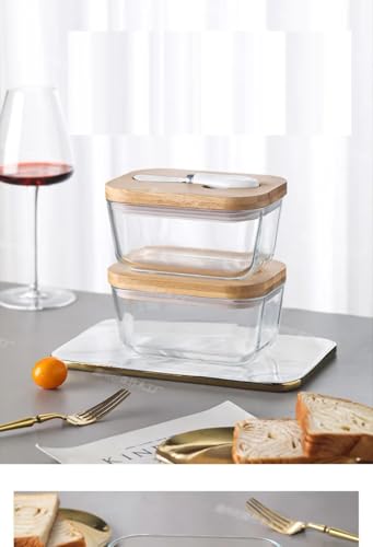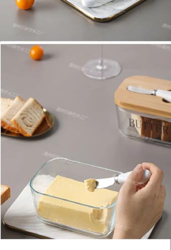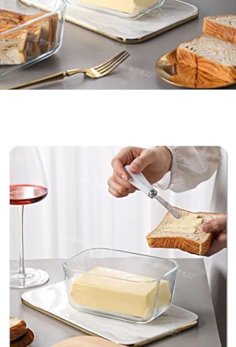 Happy Home - طبق زبدة مع غطاء للطاولة، عبوة تخزين زبدة زجاجية مع سكين مزدوج من السيليكون، آمن للاستخدام في غسالة الأطباق، ديكور للمطبخ من هابي هوم، سعة 454 جرامًا