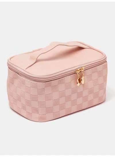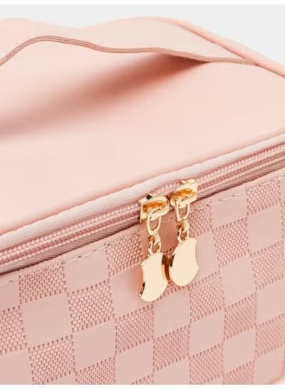 Generic - شنطة مستحضرات تجميل للسفر للنساء من هابي هوم، شنطة مكياج كبيرة لتنظيم المكياج مع جيب للفرشاة، شنطة ادوات الزينة من جلد البولي يوريثين، شنطة مكياج محمولة (بينك)