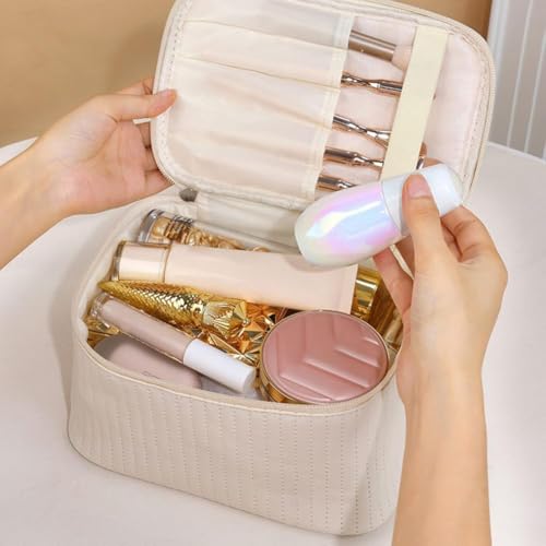 - جلد نباتي صديق للبيئة، حقيبة مستحضرات التجميل الفاخرة هذه مصنوعة من جلد نباتي صديق للبيئة ناعم ومقاوم للماء ومريح الملمس. يوفر تصميمه المبطن جيدًا حماية ممتازة لمكياجك وغيره من الضروريات.