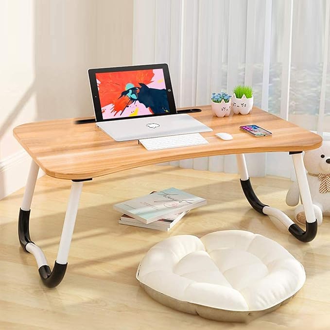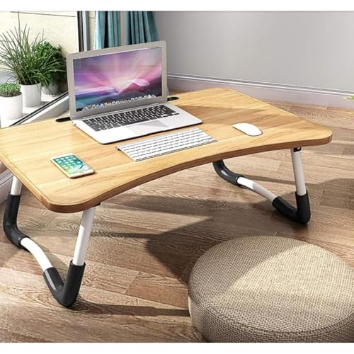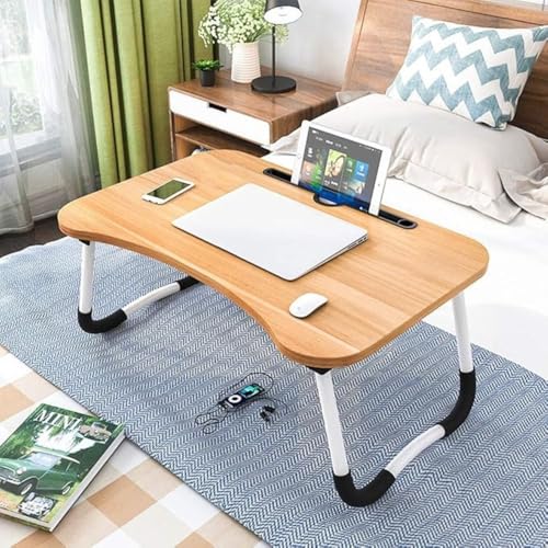 Happy Home - طاولة لاب توب مطوية مع حامل قابل للتعديل، صينية تقديم مع فتحة مخصصة، لتناول وجبة الإفطار أو العمل أو مشاهدة الأفلام في السرير أو على الأريكة أو الكنبة أو الأرض من هابي هوم - بيج