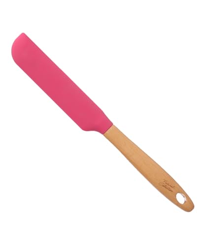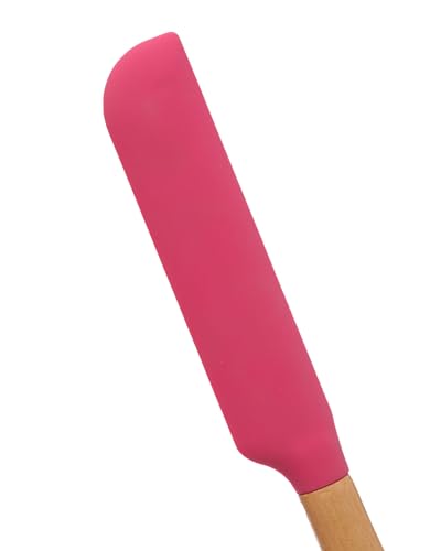 Happy Home. - معلقة سباتولا سيليكون بمقبض خشب عالي الجودة من هابي هوم، لون فوشيا
