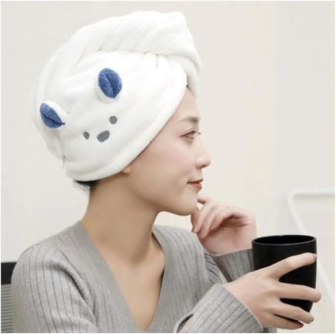 Happy Home - بونيه فائق الامتصاص من المايكروفايبر للنساء من هابي هوم، مناسب للتجفيف السريع للشعر المبلل والشعر الطويل الكثيف والمجعد (لون أبيض)