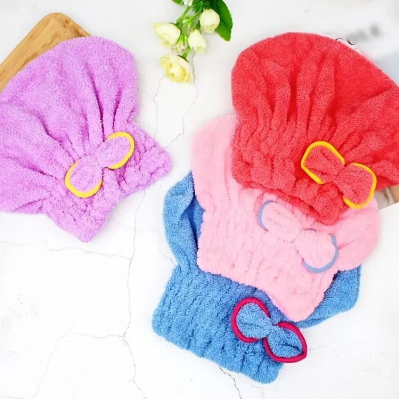Happy Home - فوطة تجفيف الشعر من المايكروفايبر فائقة الامتصاص وسريعة الجفاف للشعر الرطب القصير أو الطويل المجعد السميك، مضادة للتجعد لمستلزمات الحمام للنساء من هابي هوم (أحمر) (أرجواني)