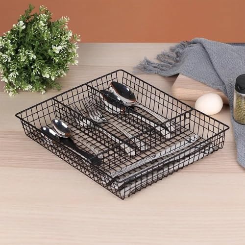 - 【تصميم مكون من 4 أقسام】 يتميز المنظم بأربع مساحات تخزين واسعة، مما يجعله مثاليًا لفرز أدوات المائدة والأواني وأدوات المطبخ الصغيرة.