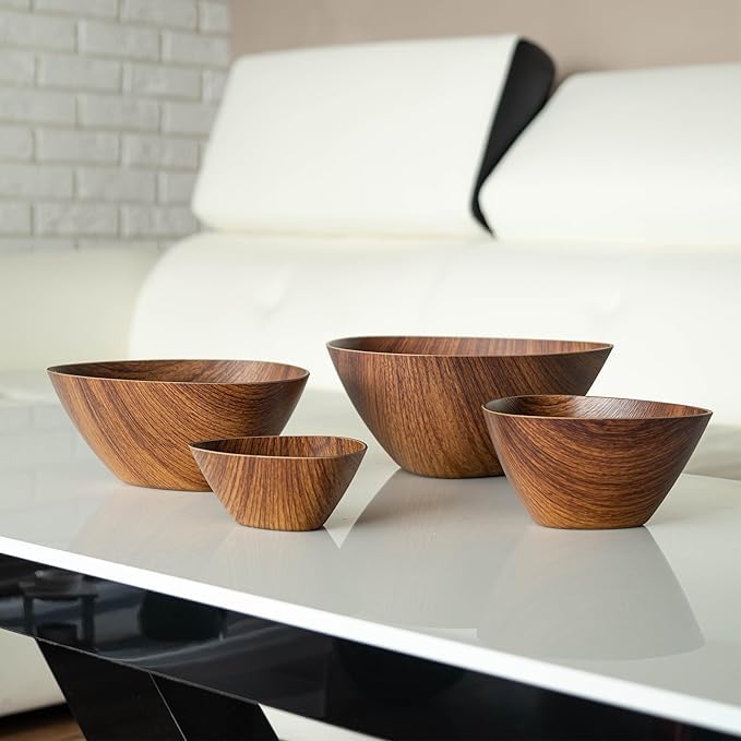 Generic - بولة سلطة بلاستيكي من هابي هوم، بولة من الخشب الصناعي، بولة تقديم عصرية، بولة بلاستيكية مقاومة للكسر وللوجبات الخفيفة (تصميم مثلث، 15.5 سم)