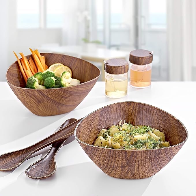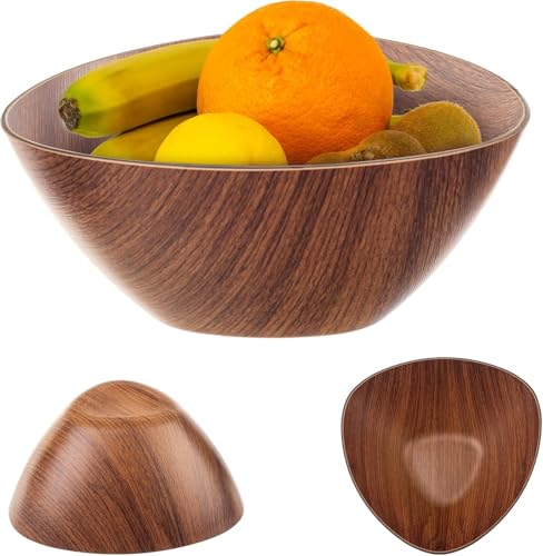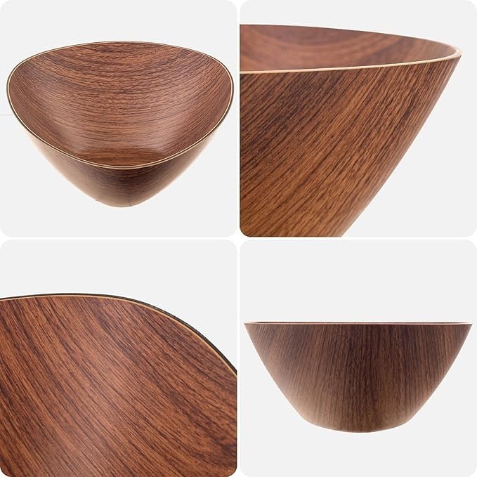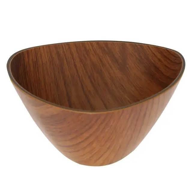 Generic - بولة سلطة من البلاستيك المقاوم للكسر بمظهر الخشب الصناعي من هابي هوم، بولة تقديم عصرية وأنيقة، طبق عميق للوجبات الخفيفة (تصميم مثلث، 20 سم)