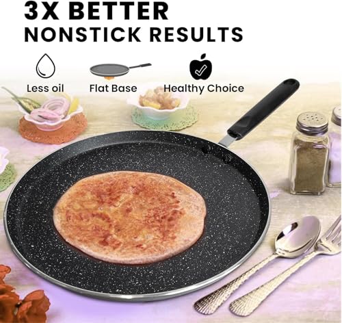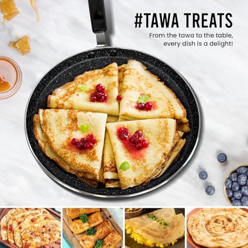 Happy Home - طاسة بان كيك فاخرة غير لاصقة مقاس 26 سم | طاسة لعمل الكريب | لموقد الحث الكهربائي والغاز| مصنوعة من الألومنيوم متين لصنع تاوا روتي والأومليت والشاباتي من هابي هوم (34 سم)