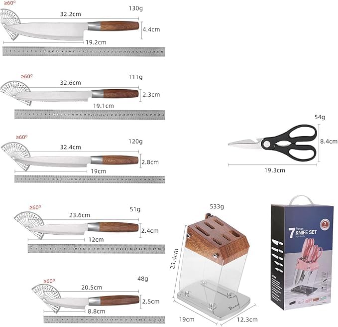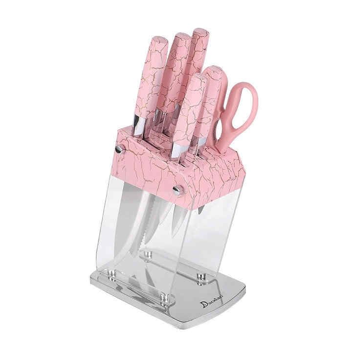 Happy Home - طقم سكاكين من الفولاذ المقاوم للصدأ مع حامل سكاكين من هابي هوم 6 قطع (وردي)