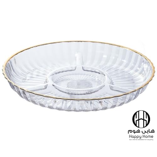 Happy Home - صينية أكريليك شفاف بإطار ذهبي للوجبات الخفيفة مقسمة أربعة أجزاء من هابي هوم، مقاس 30 سم