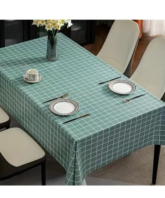 generic - مفرش طاولة من بلاستيك بي في سي مقاوم للماء من هابي هوم، مفرش طاولة مستطيل أنيق مقاوم للغبار (1.37 × 1.83 م) أخضر