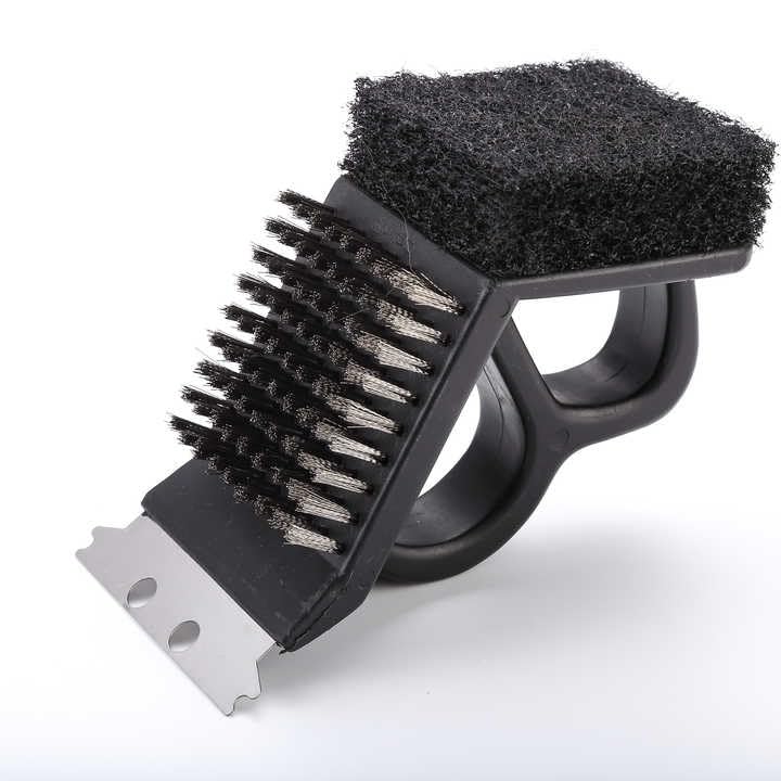 Happy Home - فرشاة شواء متعددة الاستخدامات 3 في 1 مع مقشطة من الفولاذ المقاوم للصدأ وفرشاة سلكية نحاسية وإسفنجة و مساعد تنظيف شواية فرشاة شواء من الفولاذ المقاوم للصدأ، أدوات العناية وقت الشواء