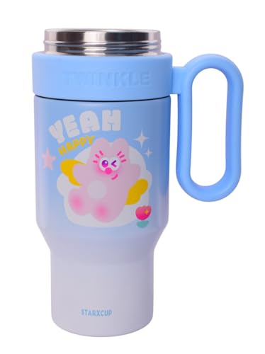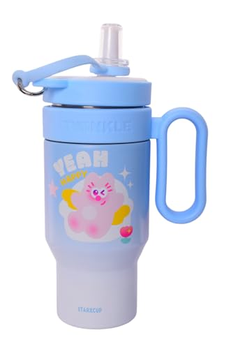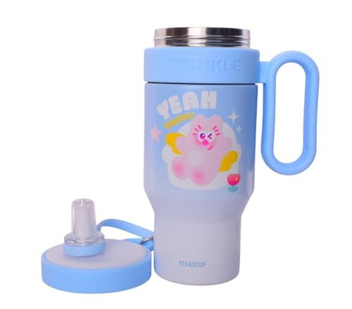 Generic - زجاجة حرارية من الفولاذ المقاوم للصدأ مع شفاطة من هابي، أزرق، سعة 850 ملليلتر