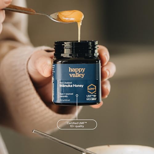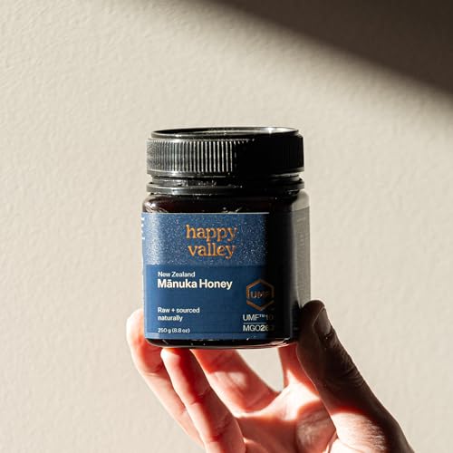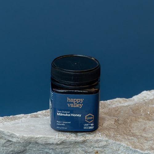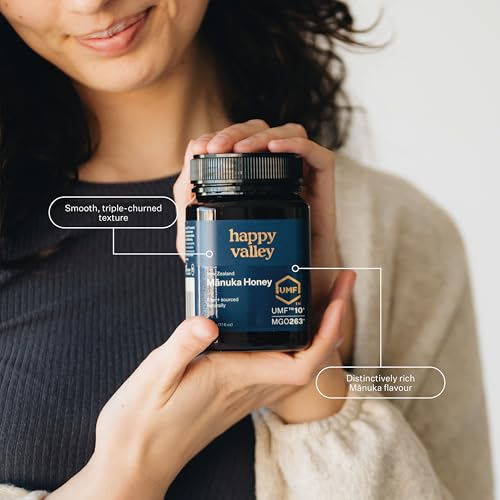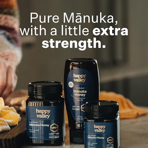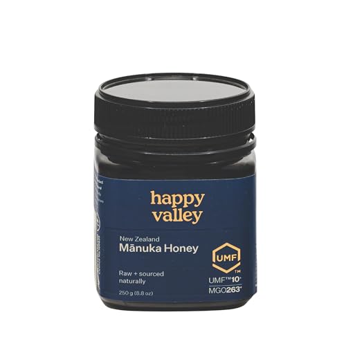 Happy Valley - عسل مانوكا الخام من هابي فالي، صنع في نيوزيلاندا، يو ام اف+ 10، ام جي او +263، 250 جرام (8.8 اونصة)